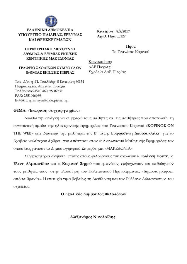 Yp Paideias Thl Epikoinwnias Gia Ekpaideytikoys Gia Korwnoio
